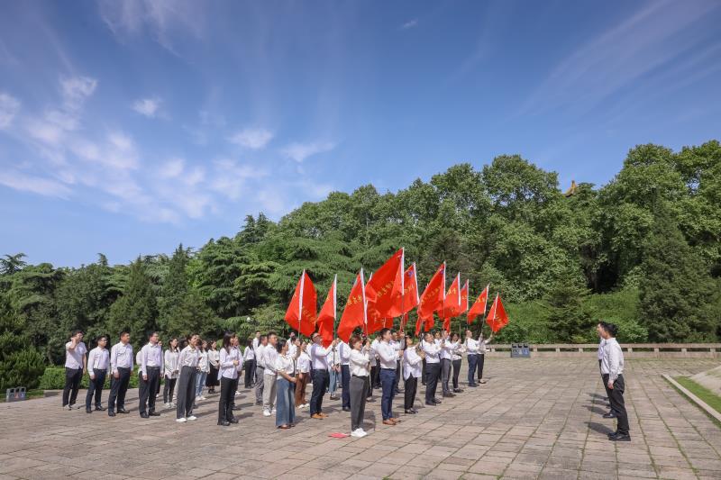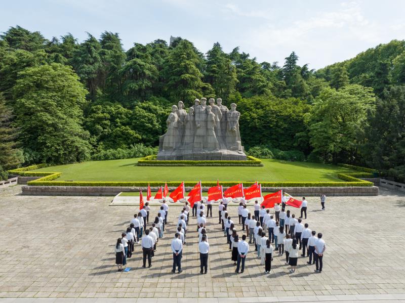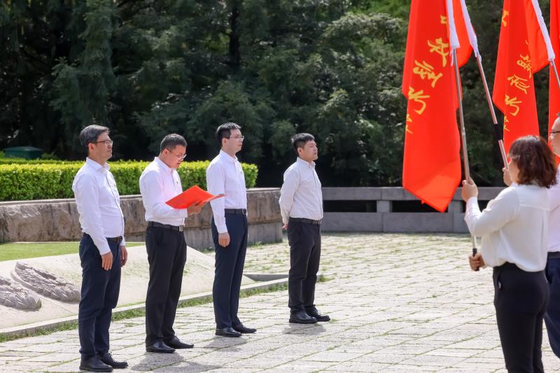 這是一次凝聚紅色力量、激昂奮進斗志的沖鋒儀式。儀式過程中,黨員們佩戴黨徽,整齊肅立,瞻仰烈士就義群雕。極目云天,松柏默立。烈士就義群雕前,全體黨員重溫入黨誓詞。黨員們面向黨旗,舉起右手,莊嚴宣誓,在鏗鏘誓詞中感悟初心使命,砥礪忠誠擔當。